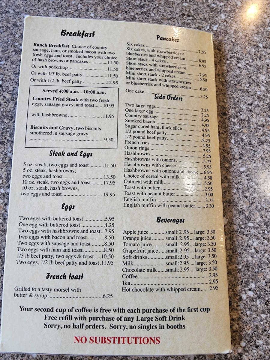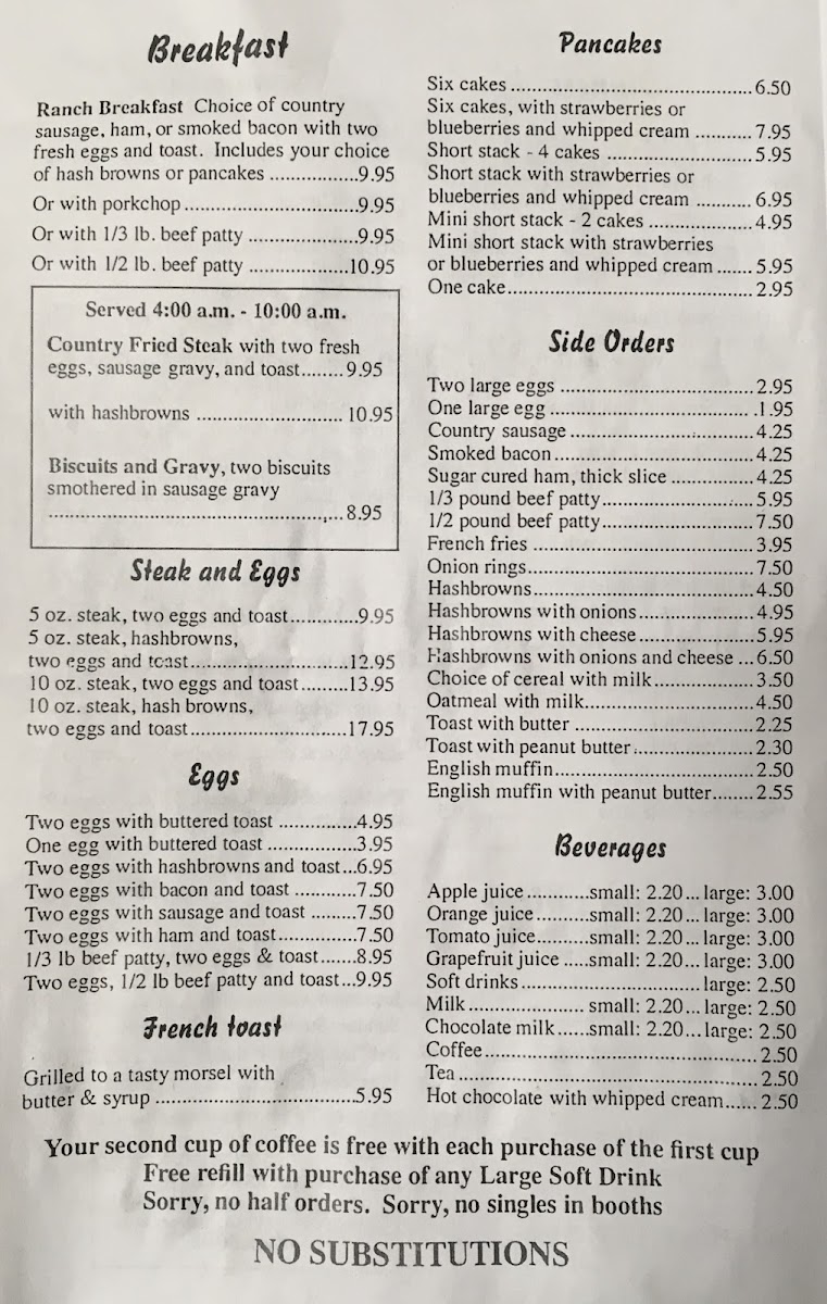 10 ounce sirloin, cole slaw toast. hash browns or french fries